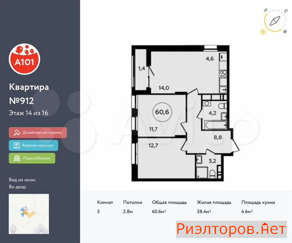 Общая площадь 56.0 м