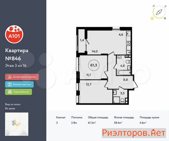Общая площадь 55.0 м