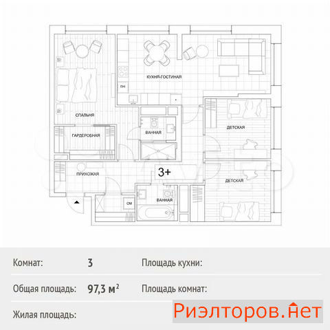 Общая площадь 98.0 м