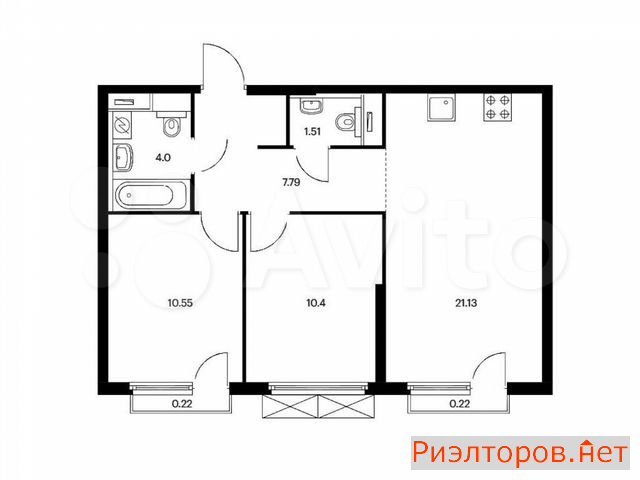 Общая площадь 55.9 м
