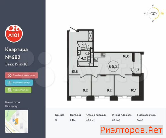 Общая площадь 66.0 м