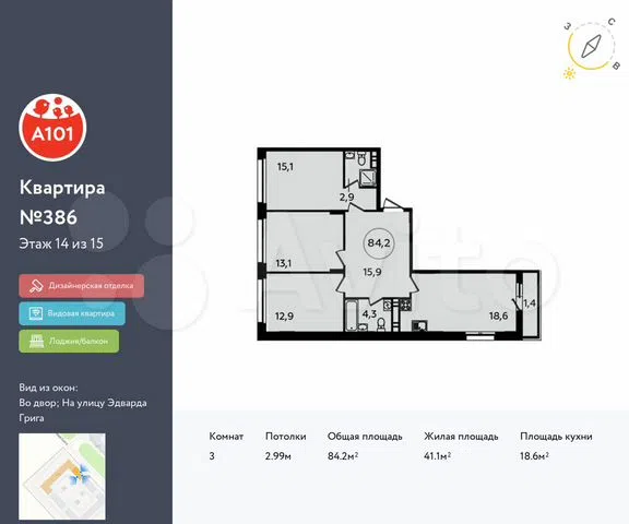 Общая площадь 107.0 м