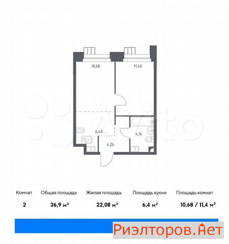 Общая площадь 36.9 м