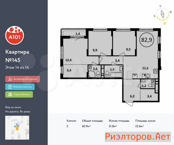 Общая площадь 98.0 м