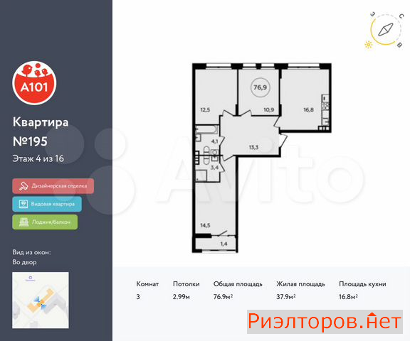 Общая площадь 76.0 м