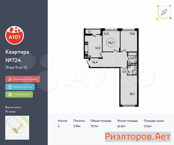 Общая площадь 79.0 м