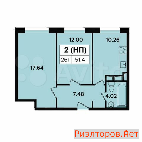 Общая площадь 51.4 м