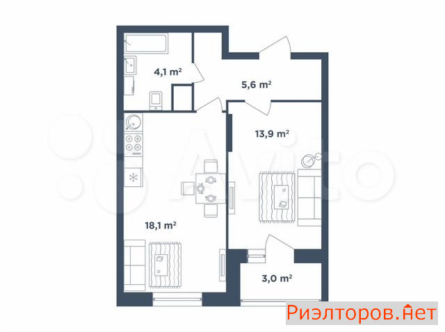 Общая площадь 44.0 м