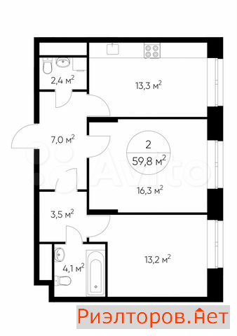 Общая площадь 58.5 м
