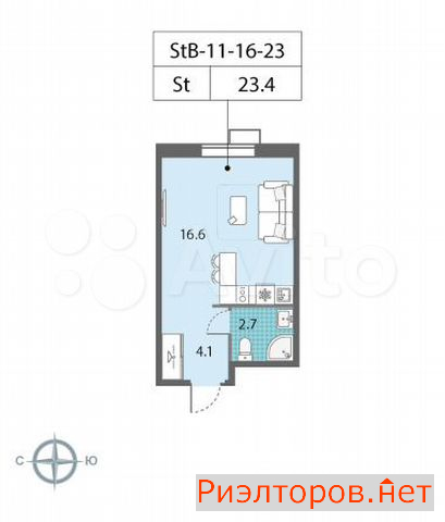 Общая площадь 23.4 м