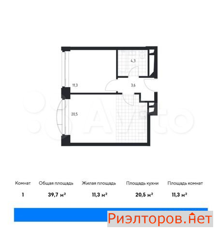 Общая площадь 39.7 м