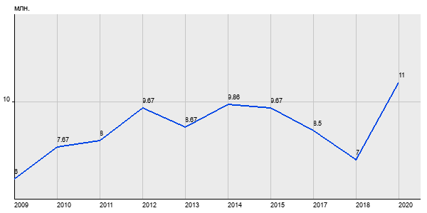 6 млн. руб, а в 2020 году - 11 млн. руб. Таким образом, средняя стоимость трёхкомнатных квартир в районе "Нагатинский Затон" за