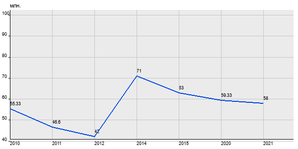 55.33 млн. руб, а в 2021 году - 58 млн. руб. Таким образом, средняя стоимость трёхкомнатных квартир в районе "" за