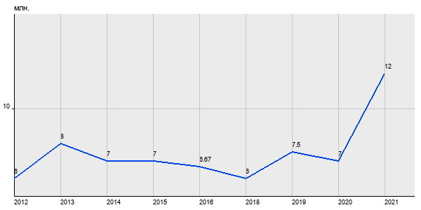 6 млн. руб, а в 2021 году - 12 млн. руб. Таким образом, средняя стоимость однокомнатных квартир в районе "Даниловский" за