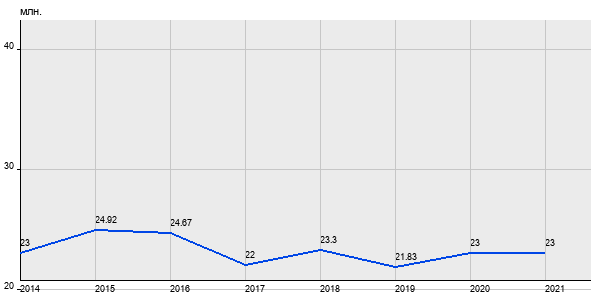 23 млн. руб, а в 2021 году - 23 млн. руб. Таким образом, средняя стоимость трёхкомнатных квартир в районе "Даниловский" за
