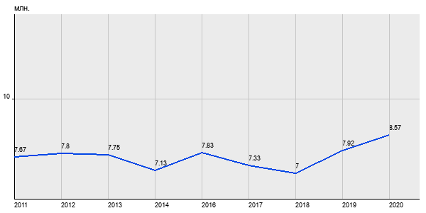 7.67 млн. руб, а в 2020 году - 8.57 млн. руб. Таким образом, средняя стоимость трёхкомнатных квартир в районе "Восточное Дегунино" за