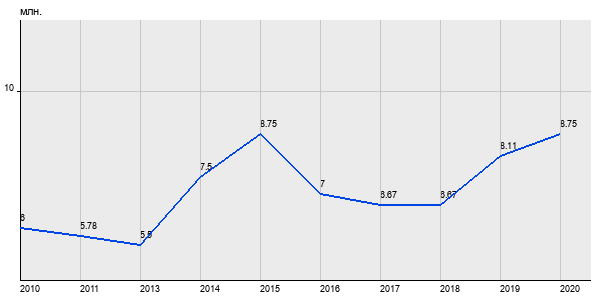 6 млн. руб, а в 2020 году - 8.75 млн. руб. Таким образом, средняя стоимость трёхкомнатных квартир в районе "Выхино-Жулебино" за