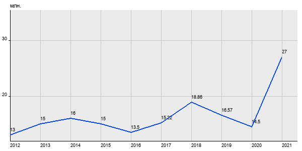 13 млн. руб, а в 2021 году - 27 млн. руб. Таким образом, средняя стоимость трёхкомнатных квартир в районе "Соколиная Гора" за