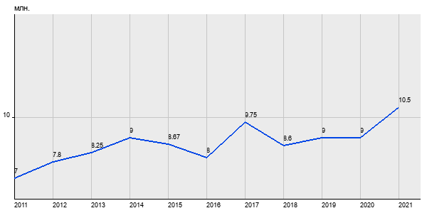 7 млн. руб, а в 2021 году - 10.5 млн. руб. Таким образом, средняя стоимость трёхкомнатных квартир в районе "" за