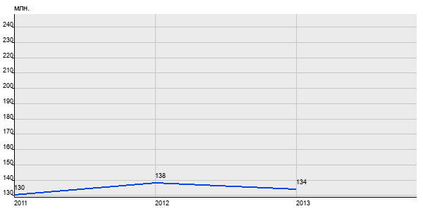 130 млн. руб, а в 2013 году - 134 млн. руб. Таким образом, средняя стоимость трёхкомнатных квартир в районе "Хамовники" за