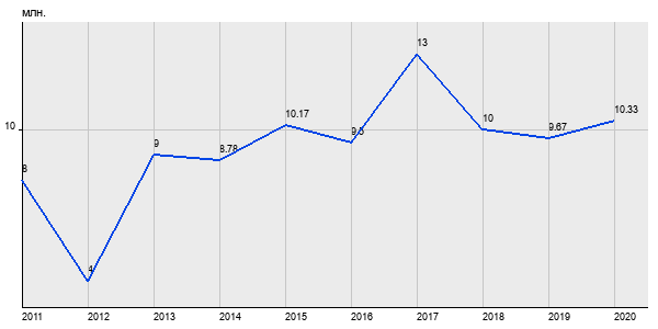 8 млн. руб, а в 2020 году - 10.33 млн. руб. Таким образом, средняя стоимость трёхкомнатных квартир в районе "Алтуфьевский" за