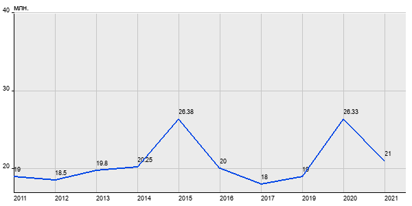 19 млн. руб, а в 2021 году - 21 млн. руб. Таким образом, средняя стоимость трёхкомнатных квартир в районе "Сокольники" за