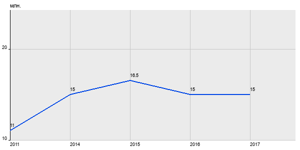 11 млн. руб, а в 2017 году - 15 млн. руб. Таким образом, средняя стоимость трёхкомнатных квартир в районе "Даниловский" за