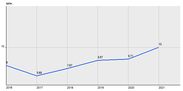 8 млн. руб, а в 2021 году - 10 млн. руб. Таким образом, средняя стоимость трёхкомнатных квартир в районе "Чертаново Южное" за