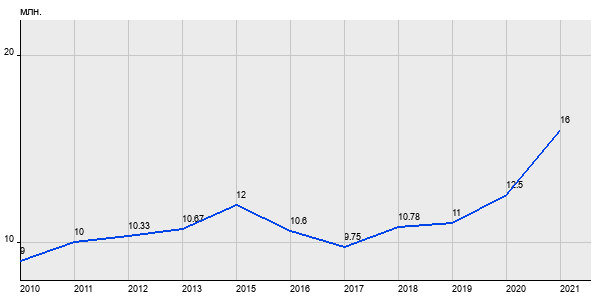 9 млн. руб, а в 2021 году - 16 млн. руб. Таким образом, средняя стоимость трёхкомнатных квартир в районе "Марьино" за