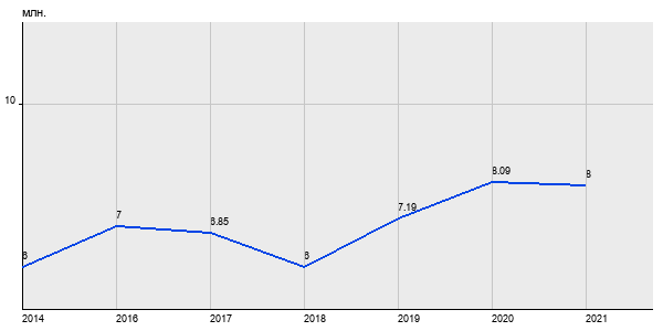 6 млн. руб, а в 2021 году - 8 млн. руб. Таким образом, средняя стоимость трёхкомнатных квартир в районе "Бирюлёво Западное" за
