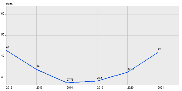 43 млн. руб, а в 2021 году - 42 млн. руб. Таким образом, средняя стоимость трёхкомнатных квартир в районе "Сокол" за