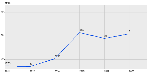 17.33 млн. руб, а в 2020 году - 31 млн. руб. Таким образом, средняя стоимость двухкомнатных квартир в районе "Арбат" за
