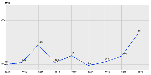 10 млн. руб, а в 2021 году - 17 млн. руб. Таким образом, средняя стоимость трёхкомнатных квартир в районе "Кунцево" за