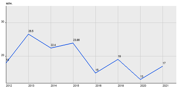 18 млн. руб, а в 2021 году - 17 млн. руб. Таким образом, средняя стоимость двухкомнатных квартир в районе "Очаково-Матвеевское" за