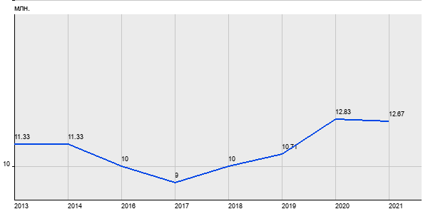11.33 млн. руб, а в 2021 году - 12.67 млн. руб. Таким образом, средняя стоимость трёхкомнатных квартир в районе "Марьино" за