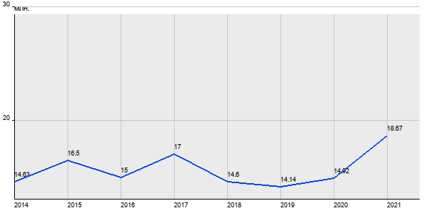 14.63 млн. руб, а в 2021 году - 18.67 млн. руб. Таким образом, средняя стоимость трёхкомнатных квартир в районе "" за