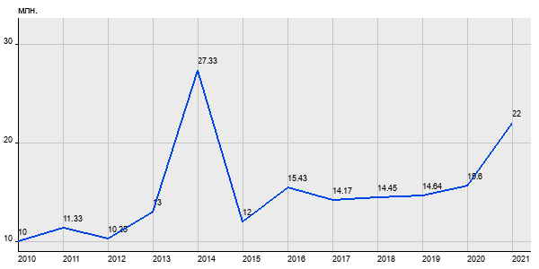 10 млн. руб, а в 2021 году - 22 млн. руб. Таким образом, средняя стоимость двухкомнатных квартир в районе "Замоскворечье" за