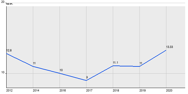 12.8 млн. руб, а в 2020 году - 13.33 млн. руб. Таким образом, средняя стоимость трёхкомнатных квартир в районе "Марьино" за