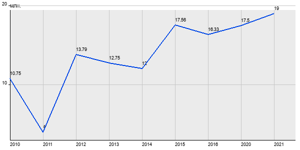 10.75 млн. руб, а в 2021 году - 19 млн. руб. Таким образом, средняя стоимость трёхкомнатных квартир в районе "" за