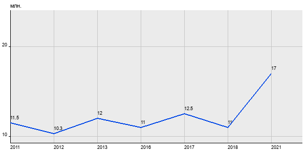 11.5 млн. руб, а в 2021 году - 17 млн. руб. Таким образом, средняя стоимость двухкомнатных квартир в районе "Замоскворечье" за