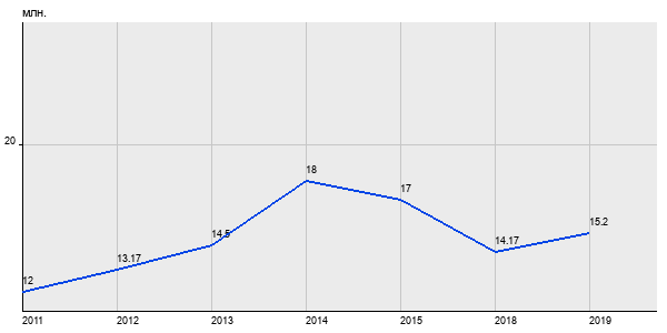 12 млн. руб, а в 2019 году - 15.2 млн. руб. Таким образом, средняя стоимость трёхкомнатных квартир в районе "Нагорный" за