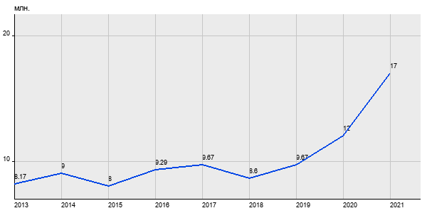 8.17 млн. руб, а в 2021 году - 17 млн. руб. Таким образом, средняя стоимость двухкомнатных квартир в районе "Аэропорт" за