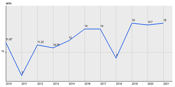 11.67 млн. руб, а в 2021 году - 15 млн. руб. Таким образом, средняя стоимость трёхкомнатных квартир в районе "Коптево" за