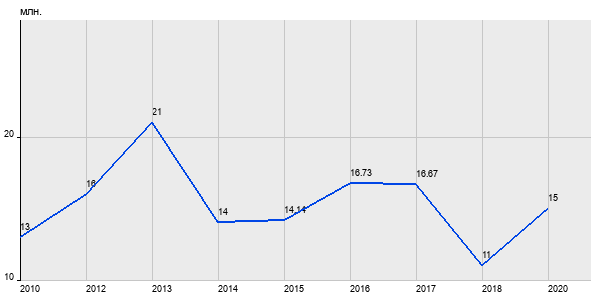 13 млн. руб, а в 2020 году - 15 млн. руб. Таким образом, средняя стоимость двухкомнатных квартир в районе "Хамовники" за