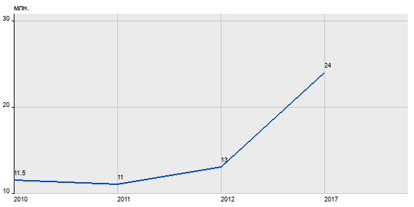 11.5 млн. руб, а в 2017 году - 24 млн. руб. Таким образом, средняя стоимость трёхкомнатных квартир в районе "" за