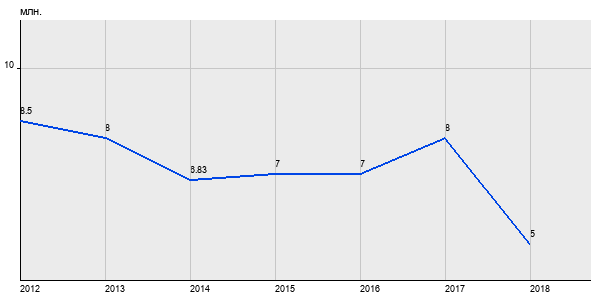 8.5 млн. руб, а в 2018 году - 5 млн. руб. Таким образом, средняя стоимость двухкомнатных квартир в районе "Нагатинский Затон" за