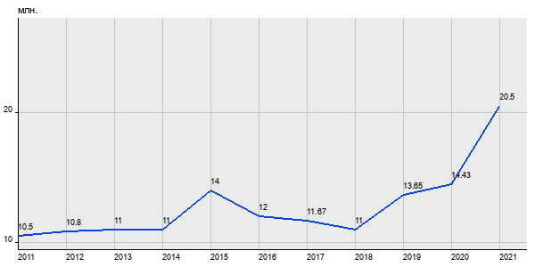 10.5 млн. руб, а в 2021 году - 20.5 млн. руб. Таким образом, средняя стоимость трёхкомнатных квартир в районе "Беговой" за