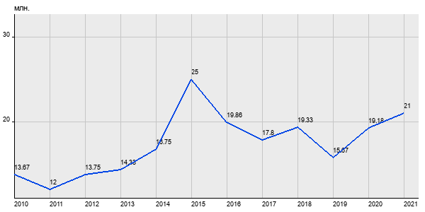 13.67 млн. руб, а в 2021 году - 21 млн. руб. Таким образом, средняя стоимость двухкомнатных квартир в районе "Якиманка" за