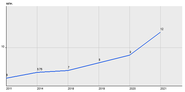 6 млн. руб, а в 2021 году - 12 млн. руб. Таким образом, средняя стоимость двухкомнатных квартир в районе "Новокосино" за