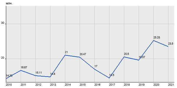 14.33 млн. руб, а в 2021 году - 23.5 млн. руб. Таким образом, средняя стоимость трёхкомнатных квартир в районе "Дорогомилово" за